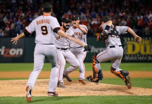 San Francisco Giants’ Pat Burrell (left to right) Brian Wilson, Aubrey Huff and Buster Posey celebrate after defeating the Texas Rangers to win Game 5 of the Major League Baseball championship and to clinch the World Series in Arlington, Texas.(REUTERS/Brian Snyder) # All the long suffering San Francisco Giant fans (the ones that hadn’t given up or died) finally saw them win the big one. My sister and I have been Giant fans since we were very young. We saw Bobby Bonds, Willie Mays, and Willie McCovey play at Candlestic park. We saw them struggle through the eighties when my cousin Jim Wohlford played for them and they were lousy (not Jim’s fault).