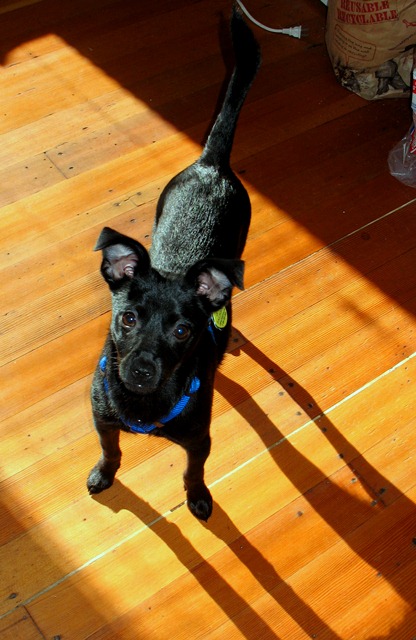 About 2 months ago my wife and daughter went to the regional rescue shelter and picked out a dog. They brought home what they thought was an eight month old chihuahua mix. It turned out to be a six month old, mostly patterdale terrier terror. He was so calm and disoriented at first he lulled us into a false sense of easy transition into puppy care. About 3 days after we got him he began to show his terrier nature. He has as far as we know limitless energy, although he does nap in between crazy bouts of leaping toothy frenzy. He is a master of the squeaky toy, riffing madly on both ends of small a plushy animal after he shakes the life out of it.