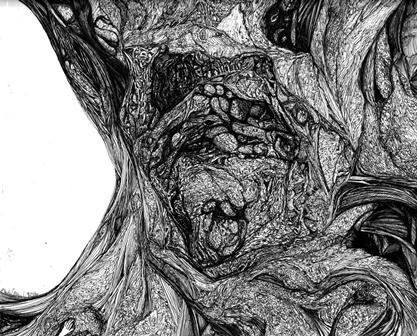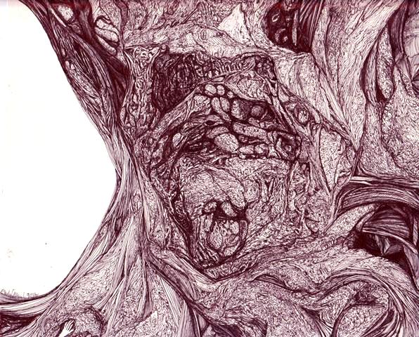 Both of these drawings were done in ordinary ball point on heavy drawing paper. Again I scanned both in color and gray scale. I couldn’t decide which I liked better. Maybe you can.