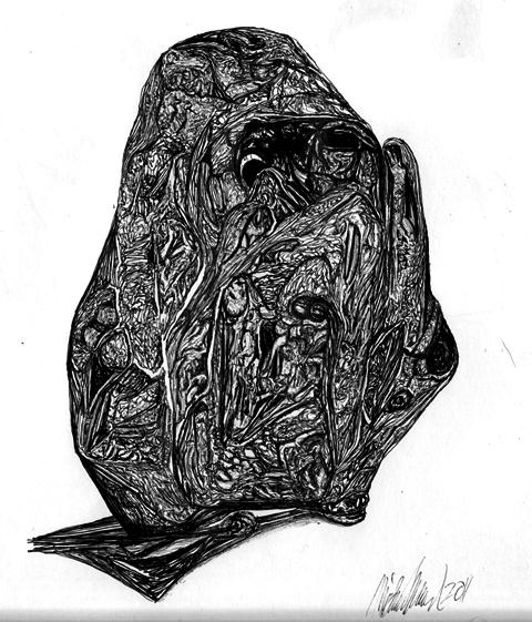 Both of these drawings were done in ordinary ball point on heavy drawing paper. Again I scanned both in color and gray scale. I couldn’t decide which I liked better. Maybe you can.